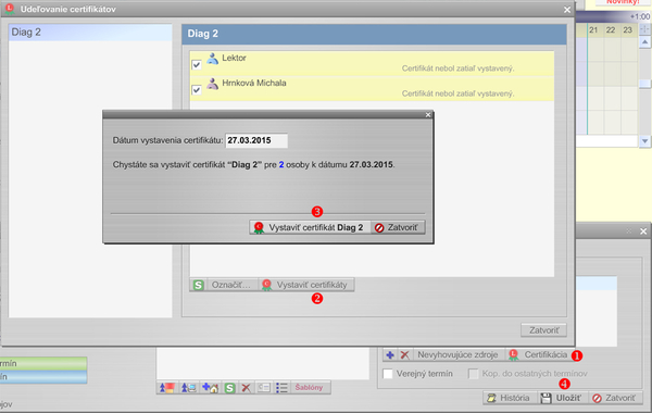 Vystaviť certifikát (označený certifikát Diag 2 pre označené zdroje)