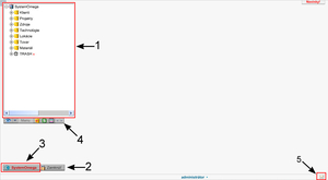 Po prvom prihlásení môžete vidieť prostredie systému v jeho základnom nastavení, ktoré môže byť upravené a personalizované tak, aby sa vám zobrazovalo iba to, čo skutočne potrebujete. V základnom pohľade vidíte hlavnú stromovú štruktúru štúdia (obrázok 1 - 1), ktorá sa podobá na systém adresárov a súborov v operačnom systéme. Hierarchická štruktúra obsahuje úložisko pre všetky položky rôznych kategórií ako zdroje, technológie a projekty nadradenej štruktúry (v tomto prípade štúdio).