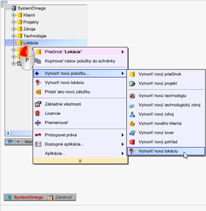 Lokácia sa vytvára v hlavnej štruktúre tak, že prejdete kurzorom nad adresár, kde by ste chceli mať lokácie uložené (zvyčajne adresár Lokácie). Podržaním ľavého tlačidla myši nad týmto adresárom sa otvorí kontextové menu. V menu zvolíte Vytvoriť novú položku ⇒ Vytvoriť novú lokáciu.
