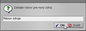 Ako ďalšie sa zobrazí dialógové okno, ktoré si vyžiada zadanie mena pre nový zdroj: