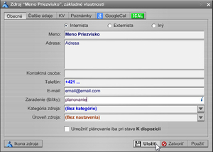 Po vyplnení mena môžete vyplniť aj ďalšie informácie o zdroji, napr. telefónne čislo, emailová adresa a iné. Potvrdením ďalšieho dialógového okna sa dostanete priamo k vlastnostiam zdroja.