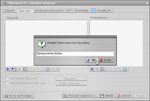 V zápätí vo formulári zadáme názov typu prác (napr. Spracovanie obrazu) a klikneme na tlačítko OK. Každú zmenu nezabudneme uložiť stlačením tlačidla Uložiť v okne Základných vlastností technológie.