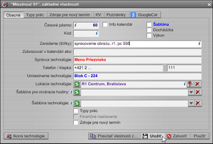 Vo formulári základných vlastností technológie je možné vyplniť všetky štandardné informácie ako meno správcu, lokáciu, atď.