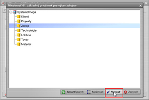 Zdroje môžeme vybrať aj ručne pomocou ikonky , alebo vyhľadať konkrétne pomocou nástroja SmartSearch . K zdrojom môžeme priradiť aj preddefinované typy práce (napr. Spracovanie, Strih) pomocou tlačidla .