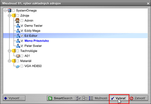 K technológií môžeme priradiť zdroje, ktoré sa budú pri plánovaní automaticky ponúkať na obsadenie termínu, a to viacerými spôsobmi. Z hlavnej štruktúry môžeme vybrať adresár, teda konkrétne zdroje v hlavnej štruktúre, ktoré budú k dispozícií pri plánovaní.